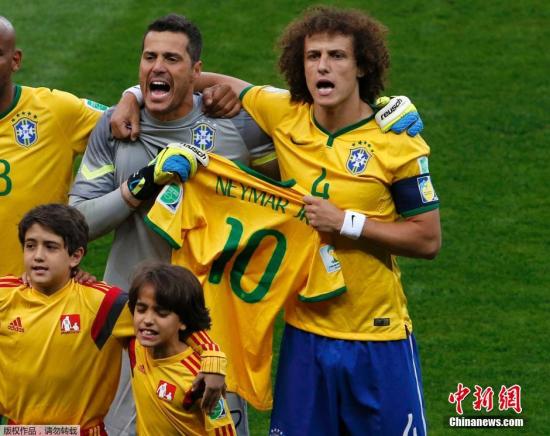 在内马尔因伤无缘世界杯后,他的队友们都向这位时运不济的队友送去了祝福。在半决赛之前的巴西国歌期间,队长路易斯与门将塞萨尔高举着内马尔的球衣,用行动来表示:内马尔与我们同在。