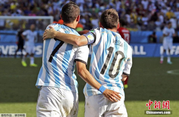 煤球王在巴西状态完全爆发,他的三场小组赛场场进球。1/8决赛,梅西一度表现平平,比赛最后关头,梅西的一次次突破和分球令瑞士队防线风声鹤唳,他在反击中给迪马利亚送出了致命的助攻。梅西也毫无争议地当选本场最佳,连续四场获此殊荣更是本届世界杯唯一一人。