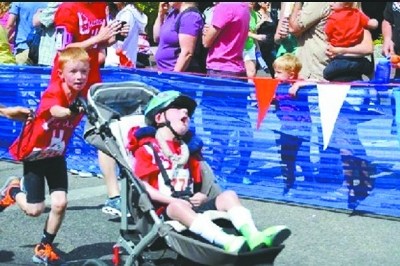 8岁男孩带脑瘫兄弟完赛 妈妈:为他而骄傲(图)