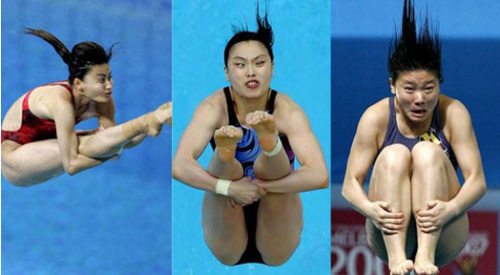 在高速激烈的赛场上,有时候运动员想控制自己都控制不住,跳水女运动员就是如此。在跳板、跳台上再闭月羞花、沉鱼落雁,但只要踏出去,这些美女们就难免“花容失色”了。郭晶晶、吴敏霞、何姿,都难逃纠结扭曲的面部表情,估计这些照片应该是她们最想彻底删除的吧。