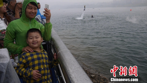 一个个“水上钢铁侠”如同蛟龙冲出水面,小朋友看着他们英姿飒爽的风姿羡慕不已,从小就埋下要当水上飞人的梦想种子。