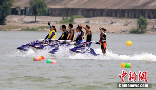 一个个犹如离弦之箭,向终点冲去;摩托艇是锋利的箭头,划出的水波是破空的痕迹。