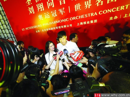 参与互动(0)刘翔与葛天。图片来源:青年报