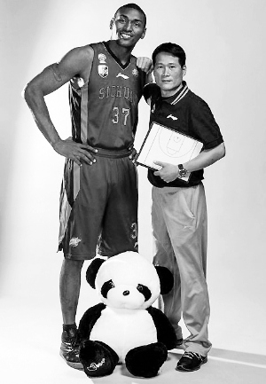 四川男篮日前发布了新赛季球队写真,新外援慈世平与教练、队友打成一片(如图)。虽然他的新名字“潘大福(意为熊猫之友)”没能被印上球衣,但他确实把熊猫带进了这支球队。从照片来看,这位NBA悍将已经喜欢上了他的新家。