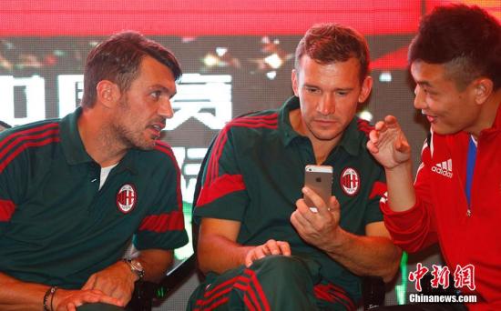 资料图:舍普琴科(中)与球迷见面。泱波 摄