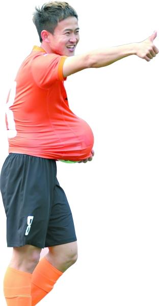 进球后,姚翰林迅速跑向球门,捡起皮球塞到球衣下,满脸喜悦地冲着西司令台挥手。“我妻子怀孕5个月了,今天还专门到现场为我加油,非常感谢她!”姚翰林此言一出,就有记者打趣道:难怪今天异常兴奋,攻守两端都有他飞奔的身影,原来要“升级”了,更有责任感了。