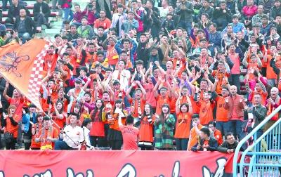 球迷助卓尔队赢得首胜 记者李葳 摄