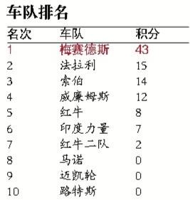 除了梅赛德斯,昨天的另一大赢家是官司缠身的索伯车队。尽管车队面临被查封装备的危险,但纳斯尔和埃里克森并未受影响,联手拿下12个积分。要知道,索伯车队去年整个赛季都没有积分入账。
