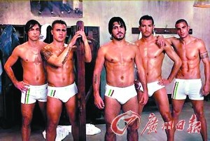 前意大利国脚们曾集体性感亮相,其中包括现任广州恒大主教练卡纳瓦罗(左二)。