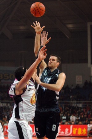 资料图:兰多夫(投篮者)。图片来源:新华网。新华社记者鞠焕宗摄