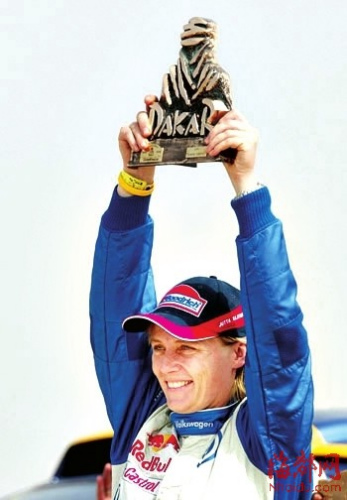 德国女车手克莱恩•施密特是达喀尔拉力赛史上第一位获得冠军的女车手,2001年她和搭档意大利女导航员法布里吉亚•庞斯一起联手,将自己的名字永久写进了这项传统赛事中。值得一提的是,克莱恩•施密特从1997年开始征战这项让很多男人都望而生畏的运动,而当时她已经35岁。