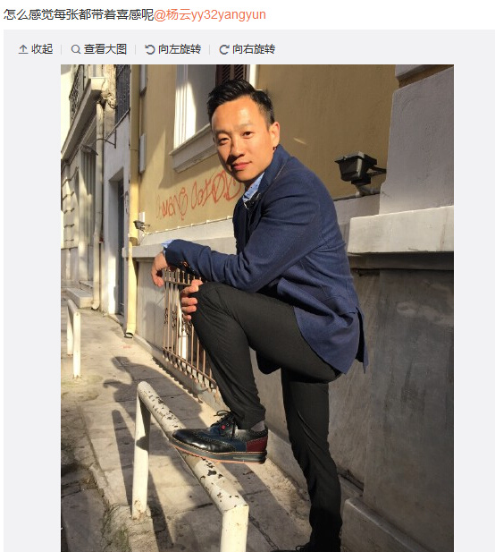 杨威晒街拍自嘲喜感足 网友:自带表情包(图)