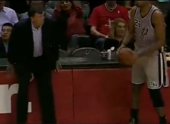 13-14赛季火箭与马刺的一场常规赛,在第二节行将结束前,马刺在后场发球,布置最后一攻。但就在裁判要将球递给准备发球的邓肯时,本在火箭替补席一侧的麦克海尔却大摇大摆地从石佛身前走过,并在其右侧站住。邓肯只得将球从身高2.08米的麦帅头顶扔到前场,这一小小的变故似乎也影响到了马刺球员的情绪,马努-吉诺比利接球后中投仓促出手不中,莱昂纳德的补篮也偏出。就在哨声响起时,怒不可遏的波波维奇对着裁判暴跳如雷,甚至还对麦帅出言怒斥,听不下去的裁判最终送给波帅一次技术犯规。