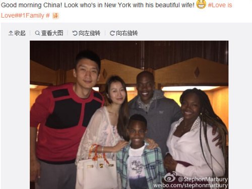 中新网5月7日电 今天上午,马布里在微博中晒出了携自己家人与孙悦夫妇的合影,并写道:“中国时间早上好,看看谁跟他的漂亮妻子在纽约”。其中一张照片中,孙悦妻子陈露还开心地搂抱着马布里的儿子,惹得网友一阵羡慕。网友留言称:“你的儿子长得好可爱”,还有网友关切地问:“孙悦的伤情怎么样了?”