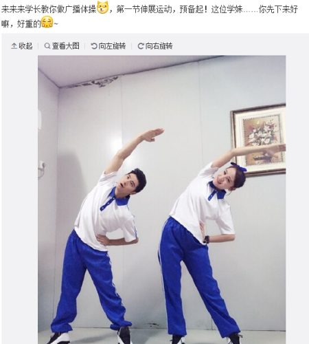 田亮叶一茜穿校服做广播体操 网友:有人早恋(图)