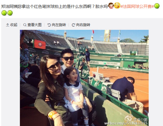 李小鹏一家观战法网 可爱奥莉与郑洁交流(图)