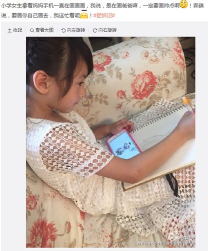 中新网6月30日电 昨晚,田亮在微博上发布一组照片,照片中他的女儿森碟一手拿着手机,另一手在很认真地画着画,画的是即将上映的电影《捉妖记》中的胡巴。