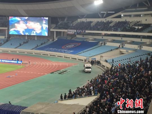 3万球迷直播视频见证求婚情侣激吻瞬间。许兴昆 摄
