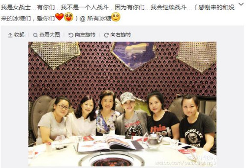 潘晓婷晒与“冰糖”聚会合照 感谢球迷支持(图)