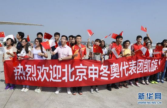 北京申冬奥代表团凯旋回京(4)
