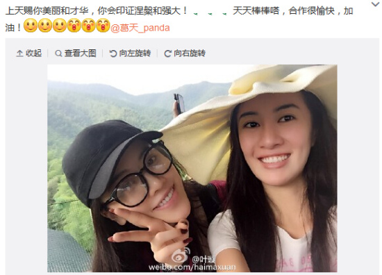演员叶璇晒与葛天合照 赞其美丽与才华并存(图)(2)