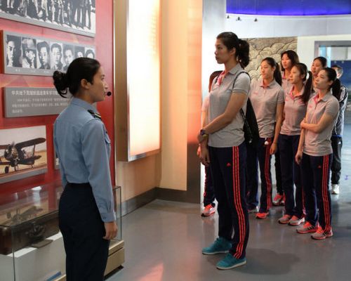 在当天的活动中,中国女排在将士们的介绍中了解了中国人民解放军空军的发展历程,参观了中国空军在不同时期的代表性装备,参观了毛主席曾经乘坐过的座机,向“英雄墙”敬献了鲜花,缅怀了空军英烈先辈们的奋斗事迹,接受了一次很好的爱国主义教育。
