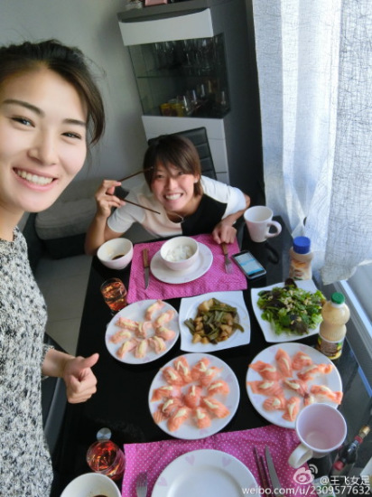 中新网9月24日电 北京时间今天凌晨,中国女足门将王飞在微博中晒出多张与里昂俱乐部队友的合影,并写道:“训练结束和队友一起来我的新家吃晚餐,第一次来主场看球,周末我们的主场场地对巴黎圣日耳曼,先感受一下主场。”照片里可见桌上摆满美食,王飞竖起大拇指,和队友搞怪合影。