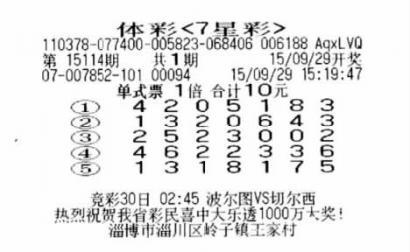 山东彩民随意写号轻松中奖 领走7星彩500万奖金