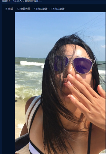 中新网11月2日电 昨晚,中国网球小花王蔷在微博上发布美照,照片中她穿着性感泳衣,在海边噘着嘴冲镜头做出了一个飞吻的动作,尽显调皮可爱。