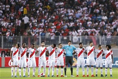 世界杯南美区预选赛前秘鲁与巴拉圭球员为巴黎恐袭遇难者默哀。