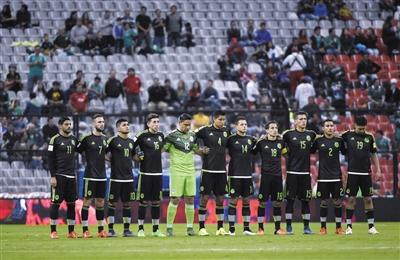 世界杯南美区预选赛前墨西哥与萨尔瓦多球员为巴黎恐袭遇难者默哀。