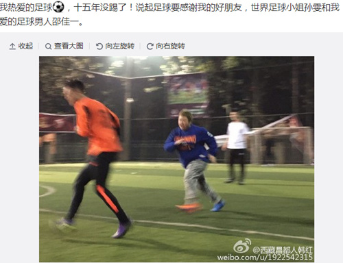 上一页 歌手韩红踢球破门“示爱”:感谢孙雯和邵佳一(3) 查看下一页