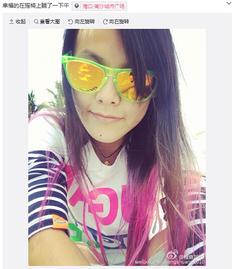 上一页 程爽在摇椅上躺一下午 网友羡慕:舒服极了(图)(3) 查看下一页