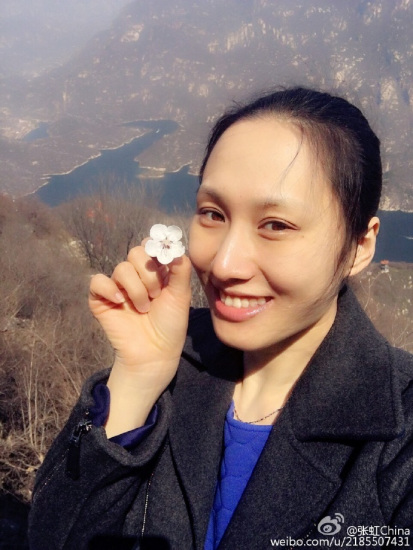 张虹爬山蓝裙搭配红靴 网友点赞:求偶遇(图)