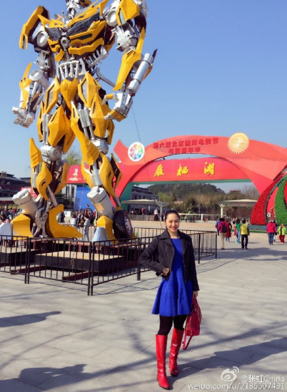 上一页 张虹爬山蓝裙搭配红靴 网友点赞:求偶遇(图)(8)
