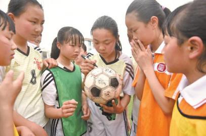 接到这个信息之后,上周五,阿里公益代表和中国女足前国门肖珍便带着“足球加油包”前往全胜中学。下过雨之后,坑坑洼洼的草坪上出现了积水,肖珍看到后给学校支招:“这个简单修补不难,在凹下去的地方填上土,用机器压紧就可以了。”接着,肖珍给足球队的孩子上了一节内容丰富的足球课,从顶球、传球、带球跑、射门,每个都耐心讲解,还亲切地称呼学生“小弟娃”。