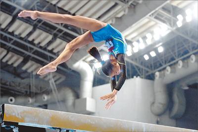 5月15日,湖南队选手商春松在2016年全国体操锦标赛女子平衡木比赛中。 新华社记者 郭 晨摄