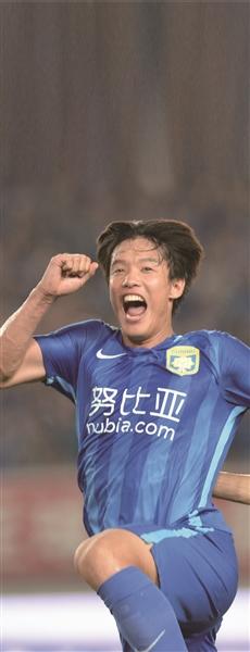 苏宁的韩国外援洪正好攻入加盟后的首球。新华报业视觉中心 吴俊 摄