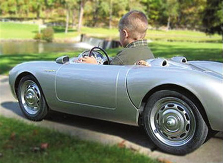 如今,9岁的布鲁克林已经拥有了自己的第2辆豪车——超小精致版保时捷跑车,这辆车是保时捷手工制造的,停车场还为小跑车专设停车位。可别小瞧了这辆超小精致版保时捷跑车,那可是真刀真枪喝油的豪华跑车!这辆保时捷价值近5万镑,柴油驱动。小车虽小,但与真正的汽车没有什么区别,不过小布鲁克林不能用这辆豪华玩具车载他的小女朋友去兜风,因为是单座的嘛。