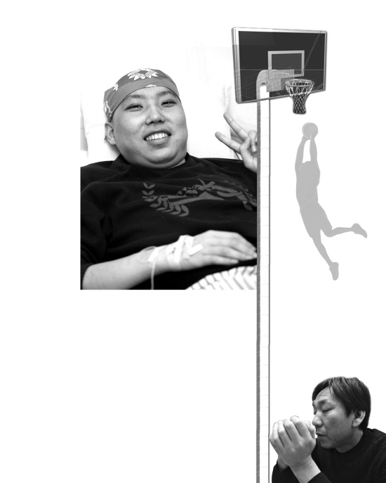 在医大住院部走廊里与记者交谈的过程中,王屾的母亲几度潸然泪下,可是出现在王屾面前时,母亲永远是满脸笑容,“我在儿子面前从没掉过泪,儿子躺在病床上,做家长的不能倒下。”王屾的父母几年前下岗,母亲做了两次大手术,父亲又患有高血压,两人将所有的精力和积蓄都用在培养王屾上,可是就在王屾在篮坛终于崭露头角时,一场重病让这个希望之星的道路充满了崎岖。背着儿子偷偷卖掉了阜新的房子后,王屾的父母一直在沈阳陪伴着王屾,每天24小时守在医院,“现在我们三口人走到哪儿哪就是家了。”