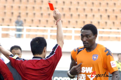 此时,正在青岛队后场的外援保罗尤如吃错药一般,俨然武圣关羽“灵魂附体”,从后场狂奔50米冲到事发地点,分别与辽宁队几名本土球员以及外援格里菲斯发生争执,甚至还施展锁喉大法,双手卡住格里菲斯的咽喉,颇具千里走单骑,过五关斩六将之风。主裁当即将这位勇若张飞、豪比关羽的黑面大侠请出了绿茵场。
