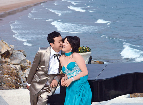 上月底,张娟娟在青岛与同为射箭运动员的薛海峰拍摄了一组婚纱照,尽显赛场外的妩媚。在海边,张娟娟和薛海峰拍了一组又一组的造型,其中以洁白的婚纱和天蓝色的低胸礼服最为出彩。拍摄过程中,小夫妻也是放开矜持,拥抱,亲吻,甚至平躺在沙滩上,在玫瑰丛中,钢琴旁边,留下了一张张令人羡慕的婚纱照。