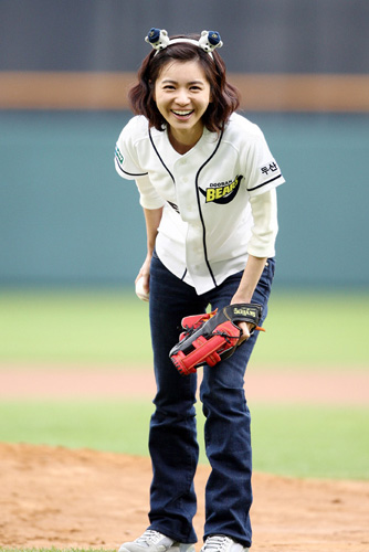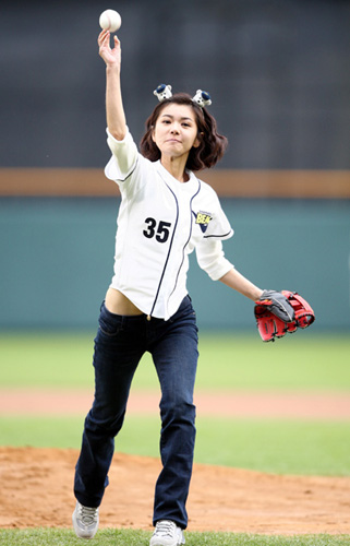 中新网4月27日电 《中央日报》报道今天刊载了一组图片,韩国艺人张瑞希愉快的在球场开球,笑容可爱。