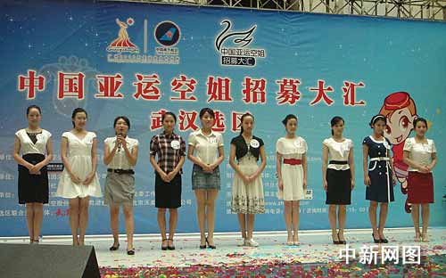 中新网武汉7月10日电 (徐金波 孙红良 沈蕾)广州亚运会组委会官方合作伙伴中国南方航空公司组织举办的“中国亚运空姐招募大汇”全国第一站,10日在武汉展开海选活动,当天8000多名佳丽从武汉三镇赶来,竞选该选区的80个亚运空姐名额。