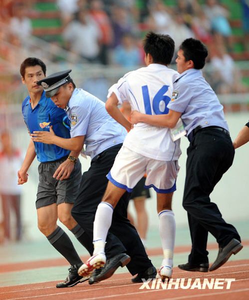 全运会比赛超越竞技层面。昨日,全运会男足甲组小组赛第三轮比赛结束,北京队3比1战胜天津队获得小组第一。输掉比赛的天津队不但在比赛中被罚下三名球员,赛后几乎所有队员都参与了追打主裁判的“工作”,替补队员12号赵世桐狂追了当值主裁判何志彪近100米并将其摁倒,使其脸部着地后狂打数拳,由此掀开了一场激战。