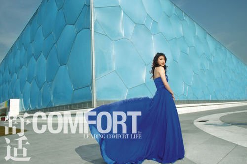 郭晶晶重回水立方拍写真 三色长裙气质优雅(图)(3)