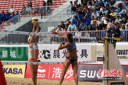 在上午的比赛中,赛会1号种子巴西女沙组合拉丽莎和朱莉安娜对阵赛会9号种子中国组合薛晨、张希。结果中国组合遗憾的以0:2输掉了比赛,两局的比分分别为21:13和21:12。