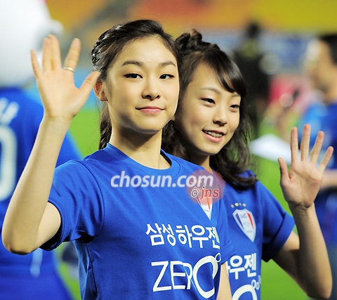 中新网5月10日电 据韩国《朝鲜日报》报道,韩国“花滑公主”金妍儿5月8日晚在水原世界杯赛场举行的“2010索纳塔K联赛三星对现代”比赛中亮相。当天,金妍儿出席了上半场结束后举办的活动。