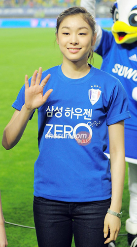 金妍儿披球衣亮相绿茵场 冰上精灵别样妩媚(图)(2)