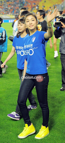 金妍儿披球衣亮相绿茵场 冰上精灵别样妩媚(图)(8)